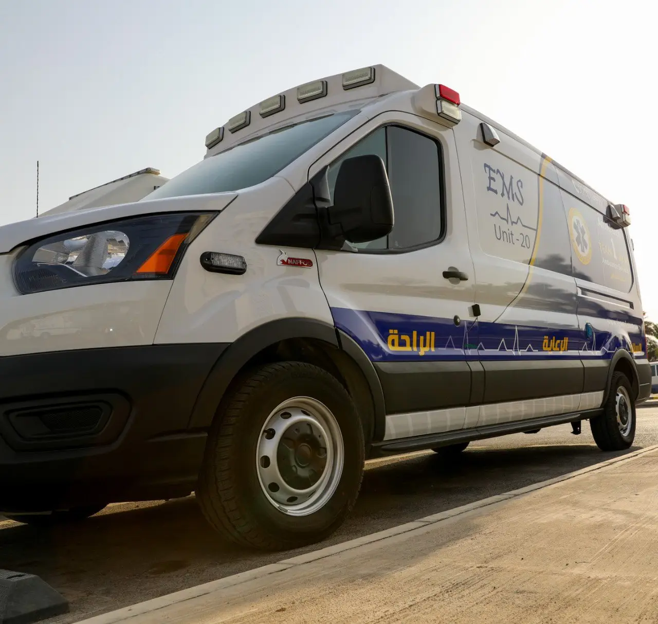 - سيارات إسعاف مجهزة بأحدث المعدات الطبية للتعامل مع مختلف الحالات الطبية